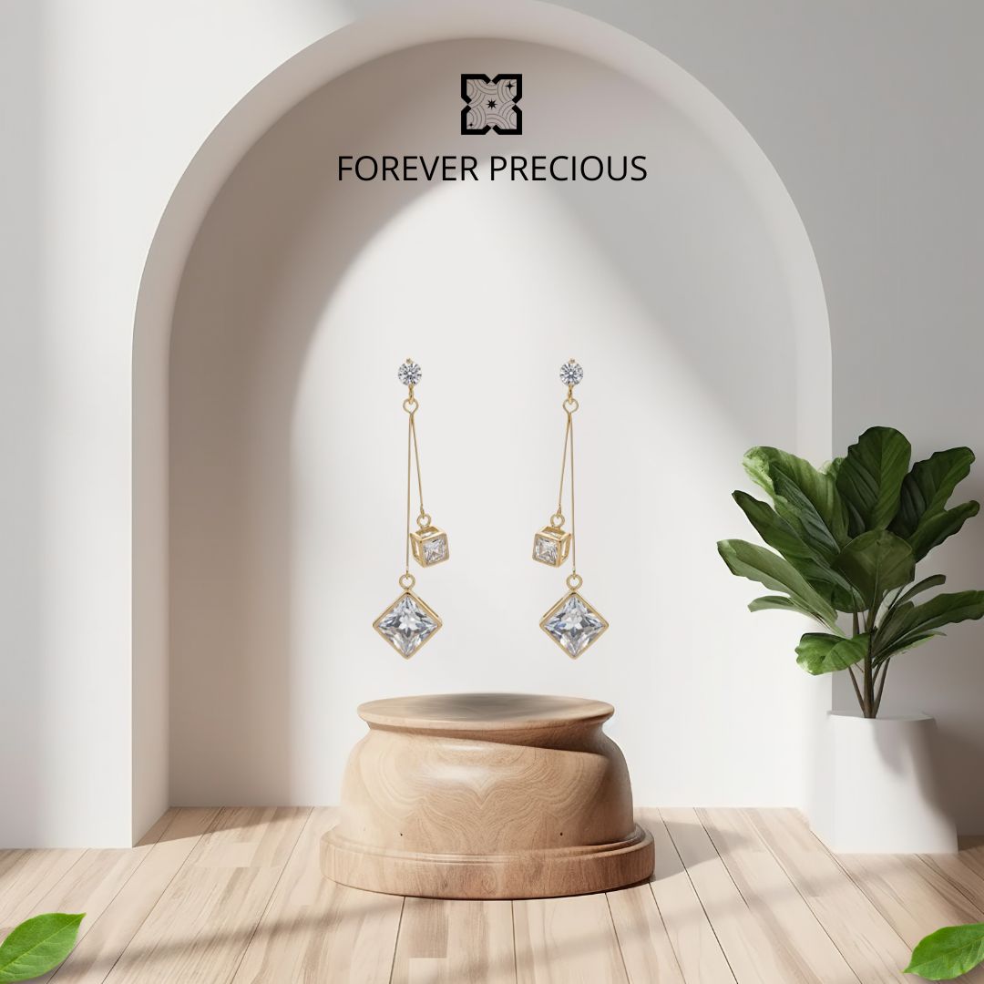 These Elegant Gold Plated Long Drop Earrings feature dual square-cut CZ stones that add a refined sparkle to every look. Lightweight, sleek, and modern perfect for parties, festive occasions, or elevating everyday outfits with effortless elegance.