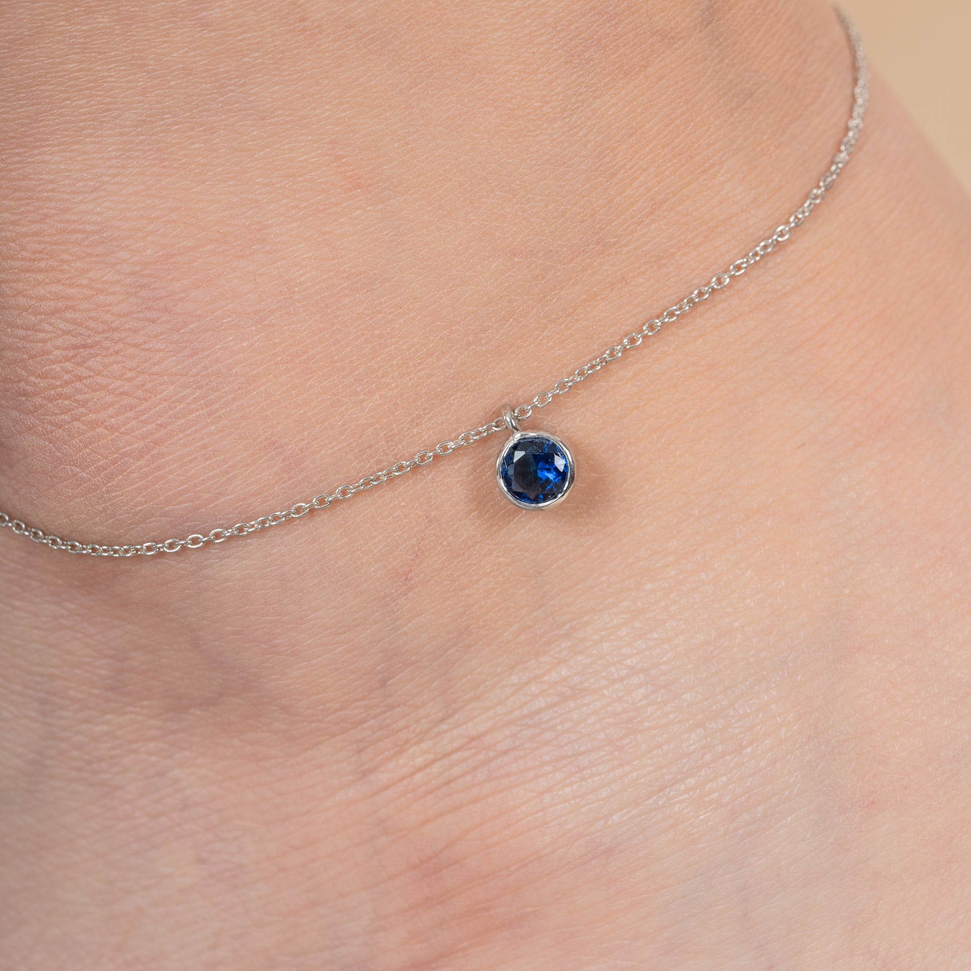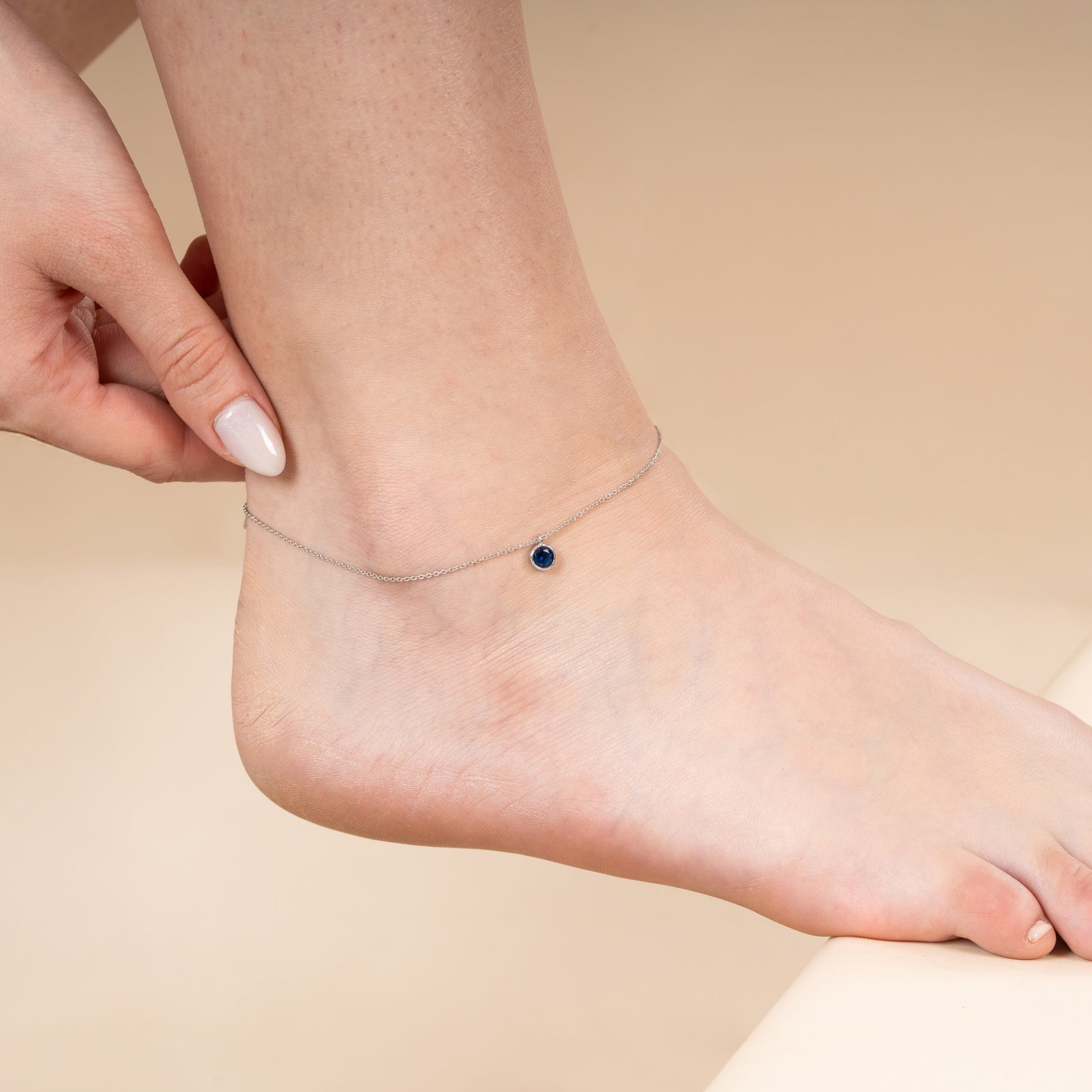 This 925 sterling silver anklet features a single deep-blue diamond charm. It's a lightweight, luxurious piece, perfect for everyday wear, reflecting calm confidence and timeless beauty.